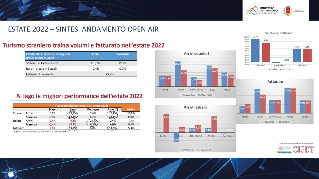 Infine il 2022 è stato un anno con numeri molto positivi per il settore dei campeggi in Italia, questo soprattutto perché, come ha dichiarato Granzotto, mostrando gli ultimi dati disponibili sulla stagione 2022, è stata una stagione molto buona, con numeri maggiori di quelli del 2019 nonostante il caro bollette e l’incognita della guerra in ucraina. La crescita del settore nell’ultio anno poi, è dovuta al ritorno in italia dei turisti stranieri, specialmente da paesi come la Germania, l’Olanda, la Danimarca e l’Austria, che rappresentano circa la metà dei turisti soggiornanti nelle strutture. La conferenza programmatica ha visto poi la partecipazione di altre personalità e rapprresentanti di categoria che hanno evidenziato anche loro, la forza del turismo open air in Italia e il suo rapido sviluppo.